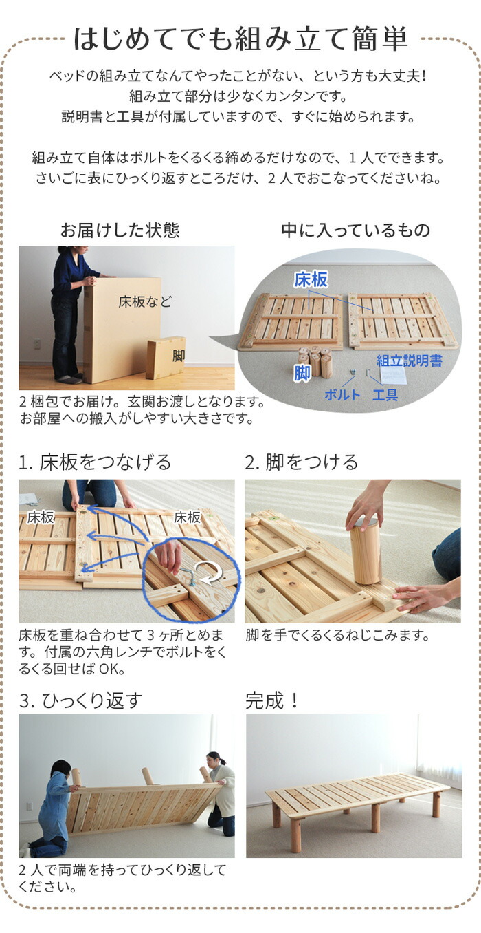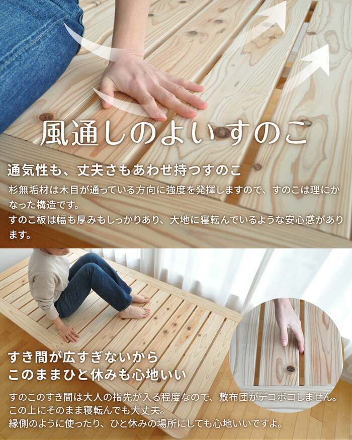 - すのこベッド 杉 シングル 敷ふとん用高さ40cmベッドフレーム 国産 無垢 天然木 無塗装 スノコ すのこ ベッド 日本製 ナチュラル S 敷布団に ビッグモリーズ bigmories ビッグモリーズ