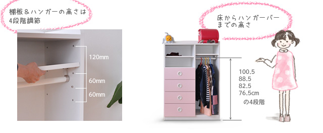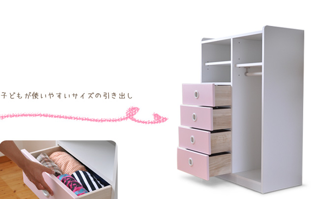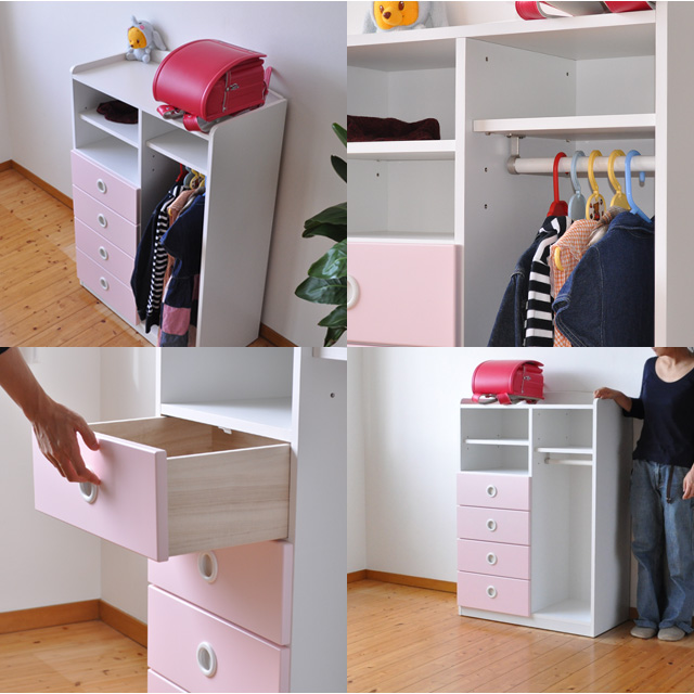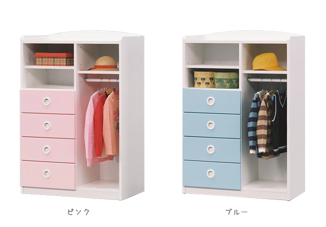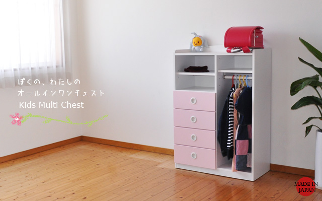- キッズマルチチェスト 幅80cm ピンク ブルー OK-CRA チェスト ハンガーラック ランドセルラック 引出し付き 子供部屋収納 ベビータンス 日本製 国産 送料無料