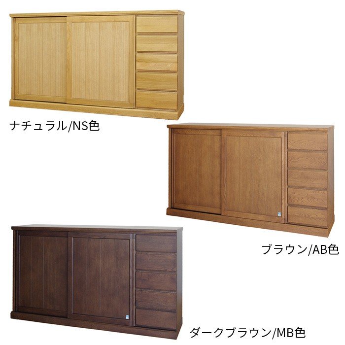 - サイドボード 幅153cm フィガロ スライド 板戸 大雪木工 引き戸 引き出し 天然木 キャビネット ワイド 完成品 モダン リビング 収納 国産 日本製 ナチュラル ブラウン ダークブラウン オーク材 送料無料