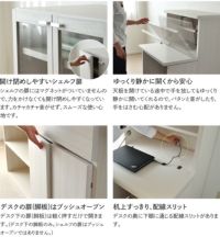 - ミニライティングデスク【ガラス戸シェルフセット】学習机 完成品 シンプル ライティングビューロー 日本製 ホワイト ブラウン リビングシェルフ リビング学習 コンパクト 省スペース 国産 テレワーク リモートワーク 送料無料