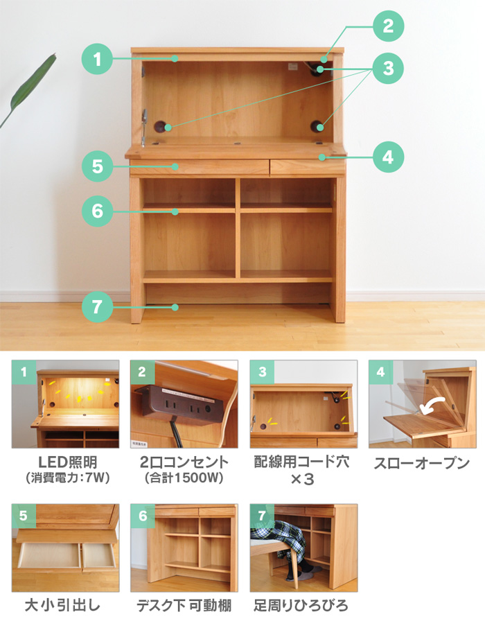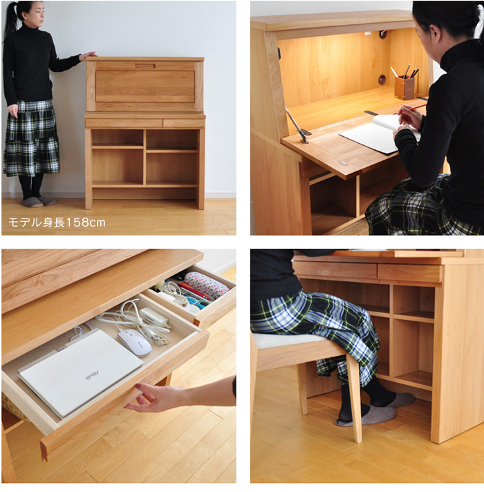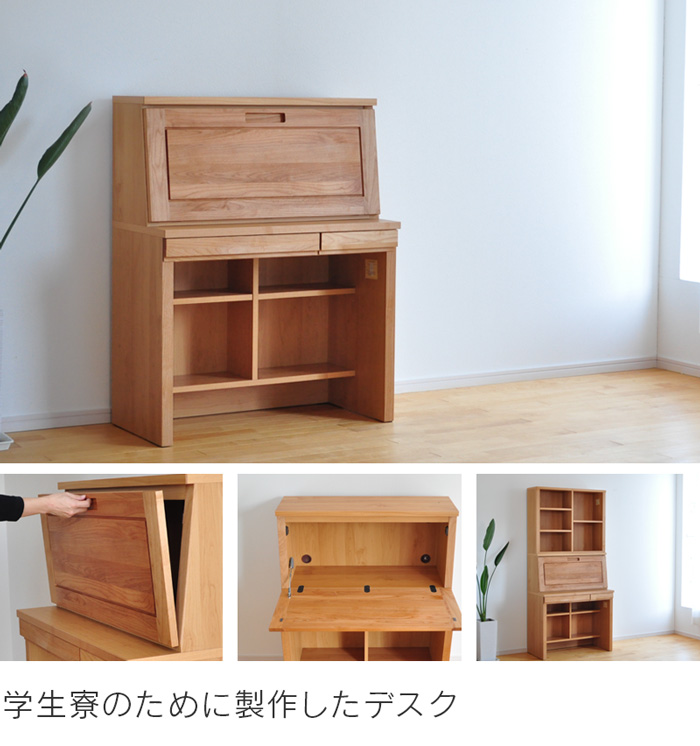 - ライティングデスク アルダー材 幅89cm May メイ デスクのみ 学習机 ライティングビューロー 天然木 ナチュラル 省スペース LED 照明付き ライト付き 収納付き 折りたたみ 無垢材 シンプル パソコンデスク 日本製 国産 テレワーク リモートワーク