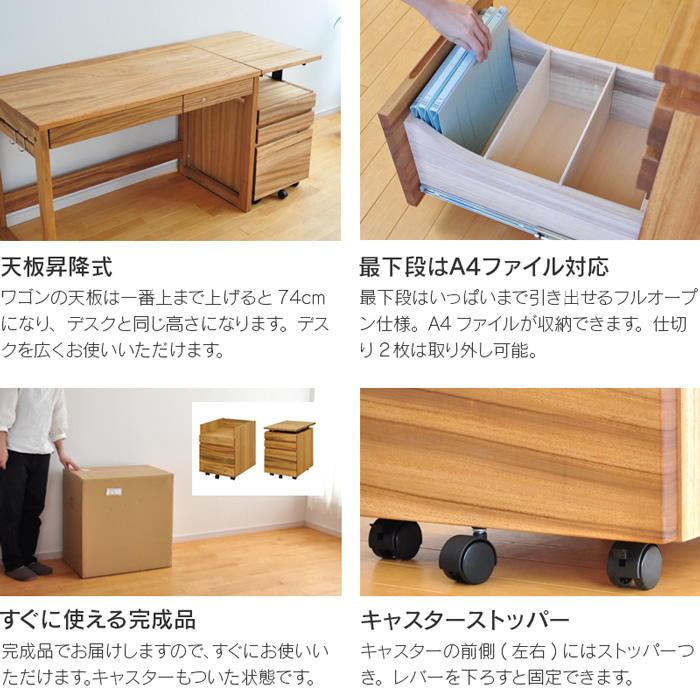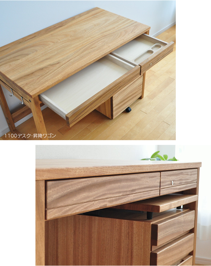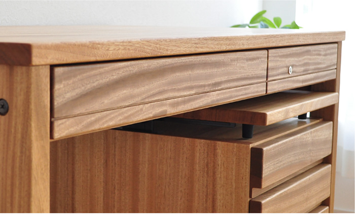 デスクやワゴンの引出しには、板と板をくさび状に組み合わせる「あり組み」の工法が使われています。これは高級たんすに使われる技術と同じ。 すみずみまで心が行き届いたつくりです。