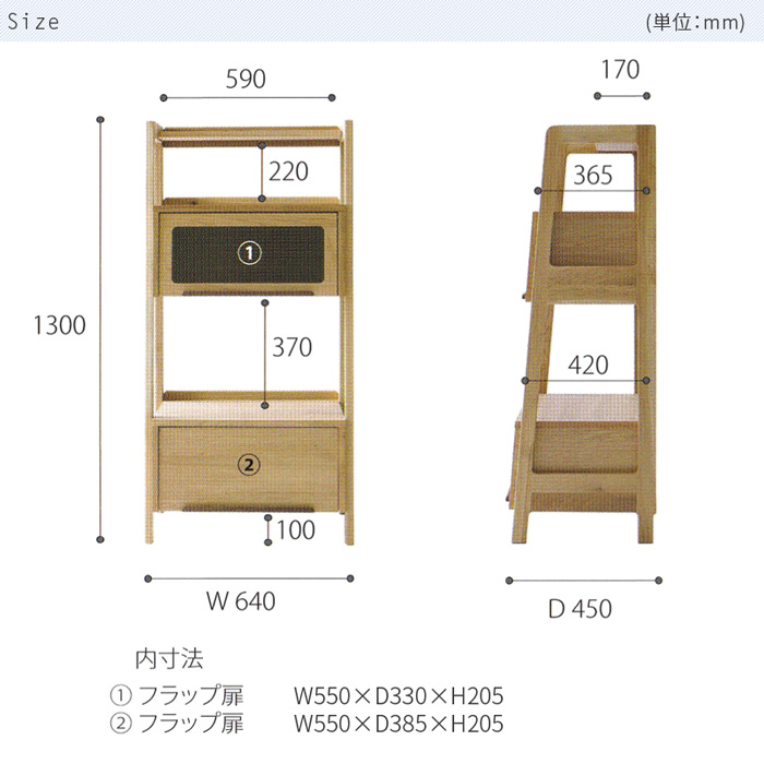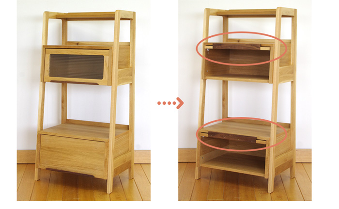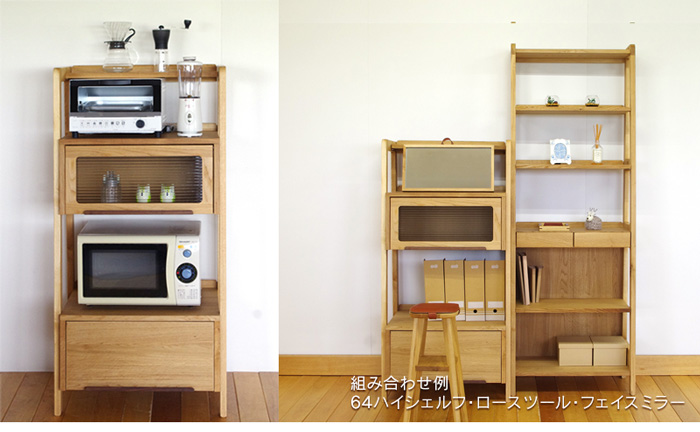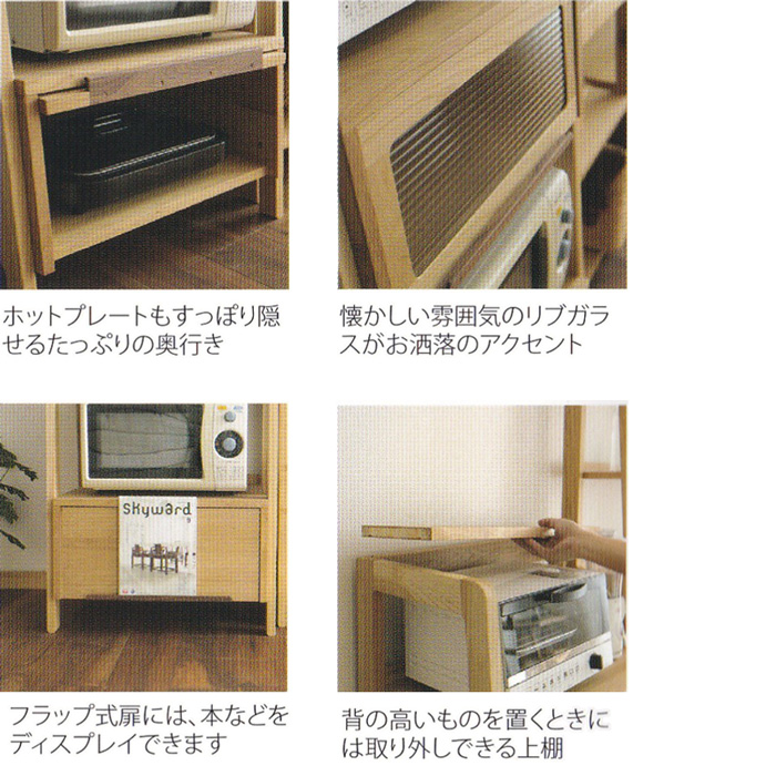 - 64フリッパーボード luonto 大雪木工 幅64cm レンジ台 フラップ扉 キッチン収納棚 レンジボード 引出し付き 天然木 ナチュラル色 ナラ材 国産 日本製 北海道 高級 送料無料