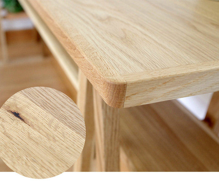 野趣に富む杢、緻密な年輪の刻み、重硬な木質は長く厳しい北海道の冬を何度も越えてきた印。 家具の形となってもなお、しずかに、息吹がそこにあることを感じ取れます。