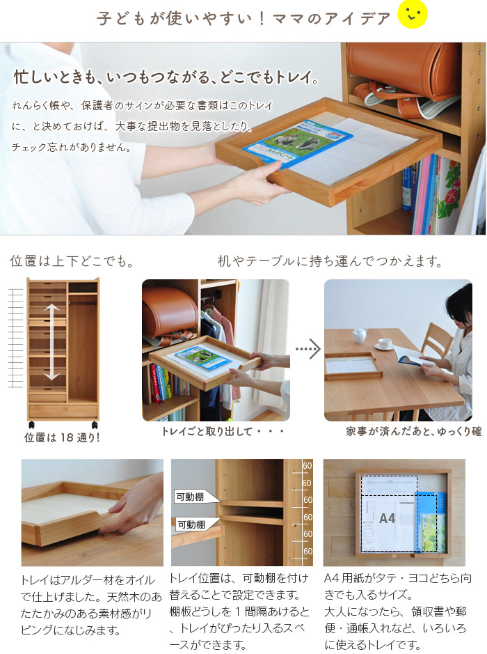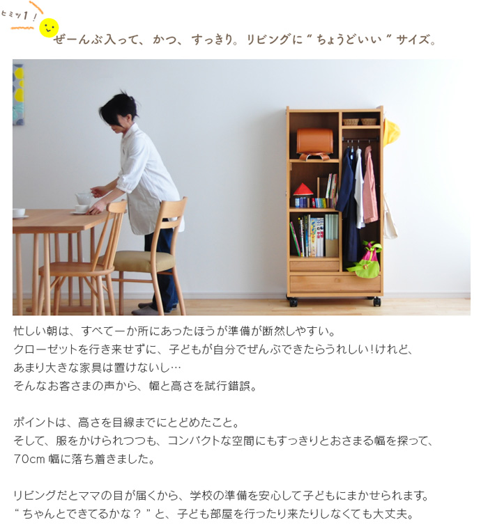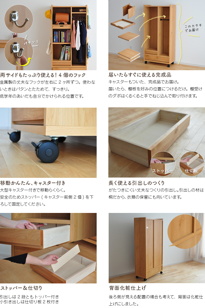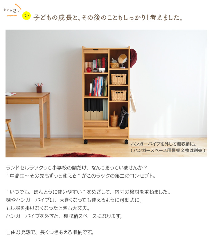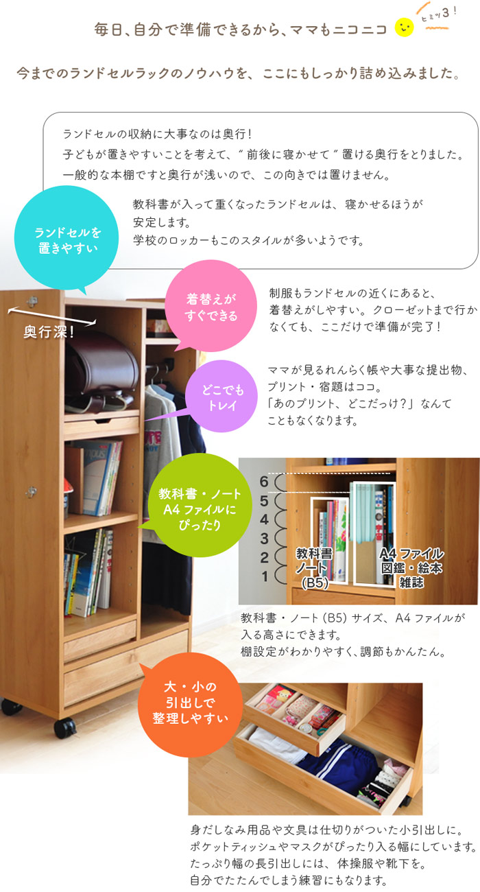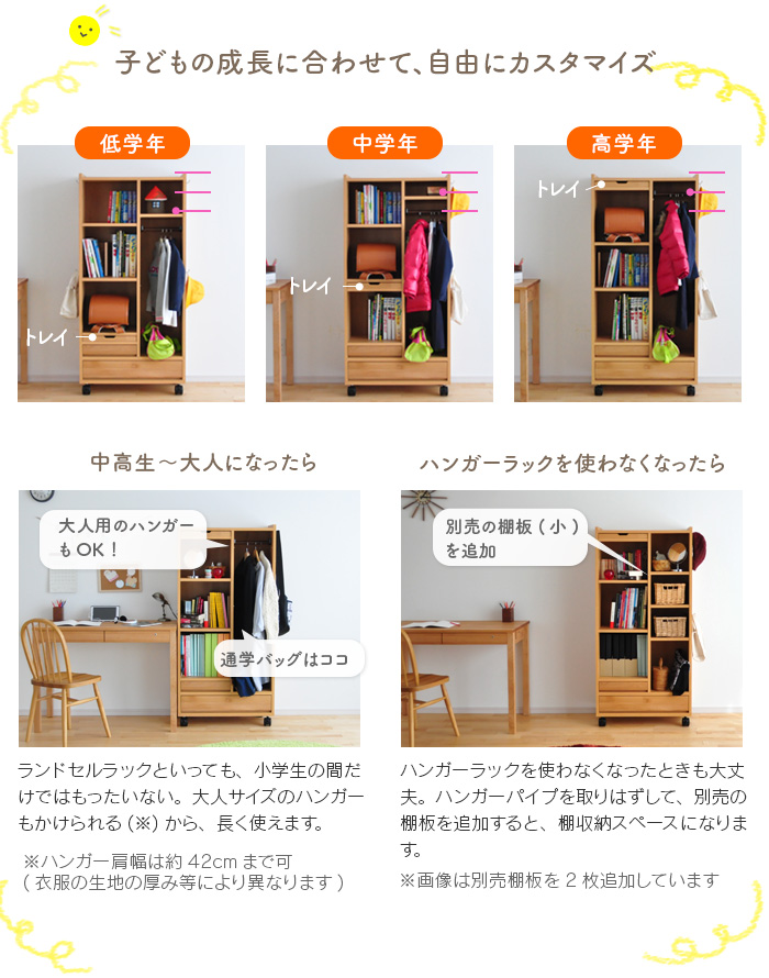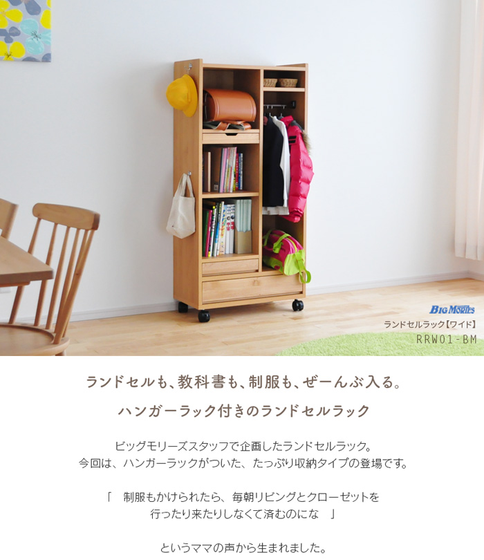 - ランドセル 収納 ラック RRW-01 ランドセルラック ワイド 完成品 棚 キャスター付き ハンガー 天然木 木製 国産 日本製 リビング 省スペース 北欧 子供部屋 ランドセル 2人用 ナチュラル 送料無料