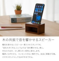 電気を使わないスピーカー兼スマホスタンドです。 「音を大きくする」というよりは「音を響かせる」 感じ。 木ならではの、少し柔らかい音色に変化します。 電源いらずだから、コンセントのない場所でも、 自由に移動が可能。 スマホスタンドとしてもおすすめですよ。