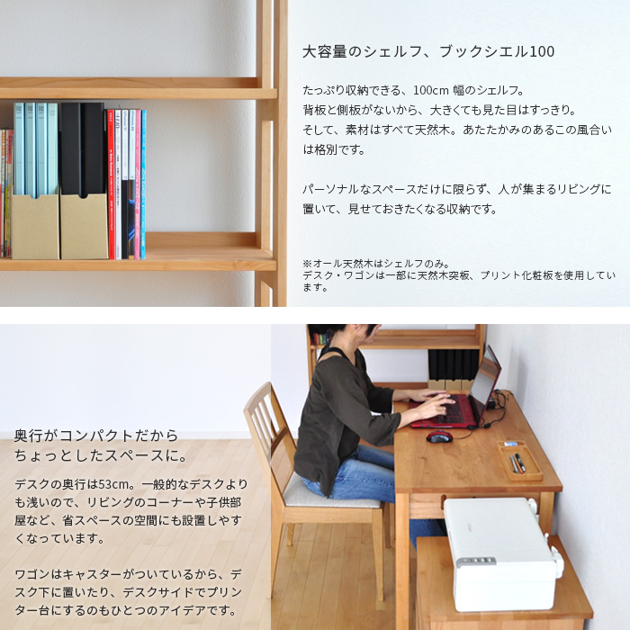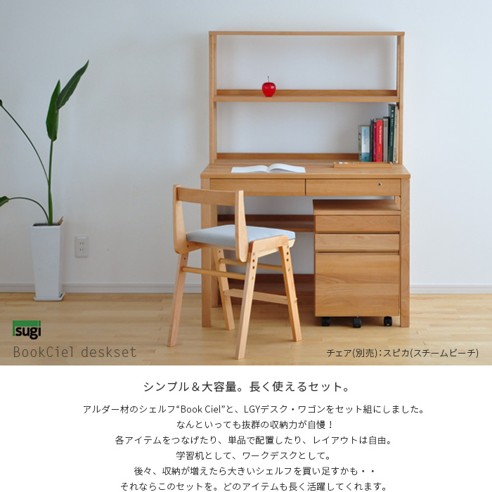 - 学習机 デスクセット 幅100cm LG-ciel100 LGY100デスク+ブックシエル100+LGYワゴン アルダー 杉工場 天然木 日本製 100cm幅 勉強机 ナチュラル ヒノキ 国産 テレワーク リモートワーク