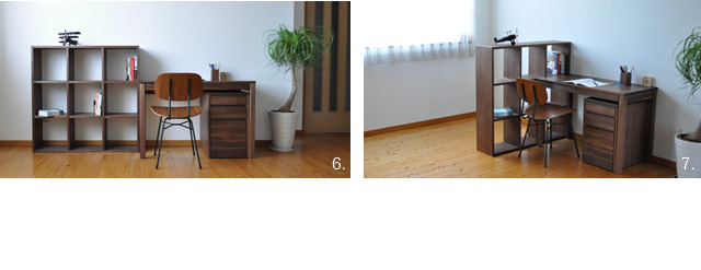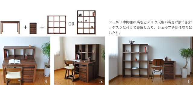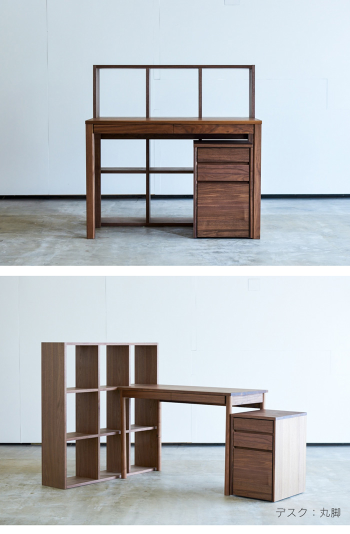 デスクとシェルフの幅が同じなので、前後につけて配置すると、棚付きの学習机の形になります。