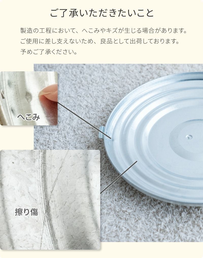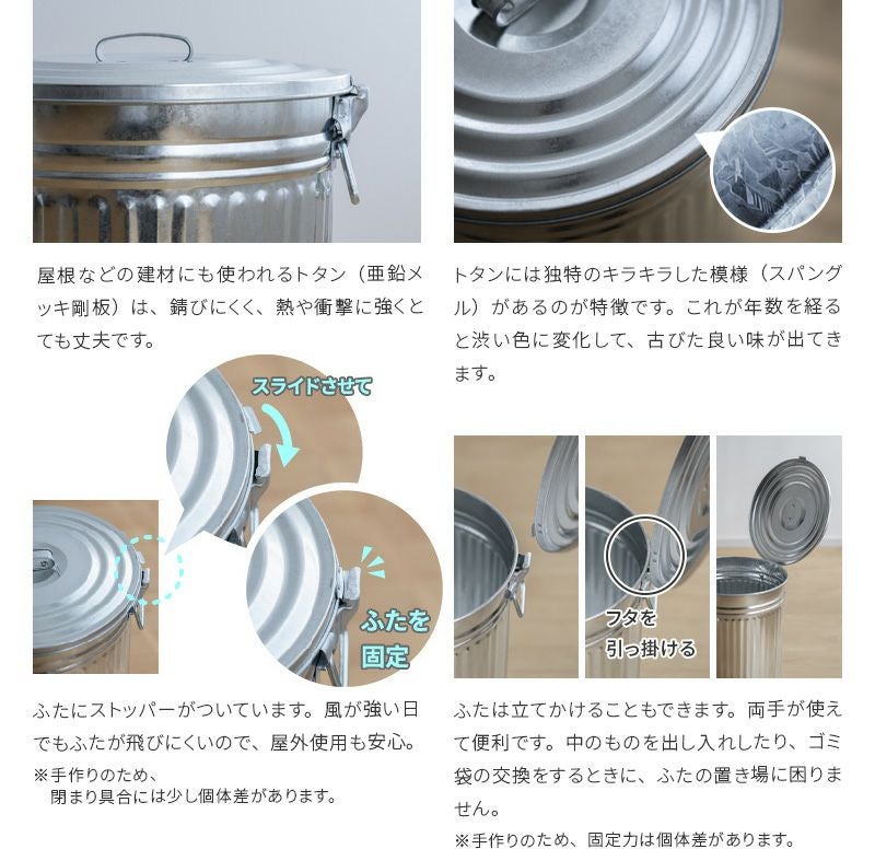 他の画像を見る サビに強いから屋外でも使えます。 ブリキよりも耐久性の高いトタン製 トタン バケツ 66L (70型) ふたストッパー付 メタルペール ダストボックス ゴミ箱 ごみ箱 大容量 日本製 66リットル 大型 シルバー 金属製 国産 ペットフード入れ ストッカー 送料無料 3年保証 国産 レビューキャンペーン対象 販売価格 ¥ 13,970 税込 お気に入りに登録する