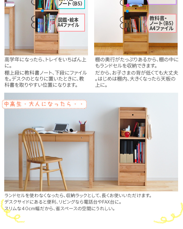 - ランドセル 収納 ラック LGY Plus ランドセルラック 完成品 スリム 天然木 木製 アルダー材 ランドセル 棚 日本製 国産 北欧 無垢 リビング 杉工場 シンプル