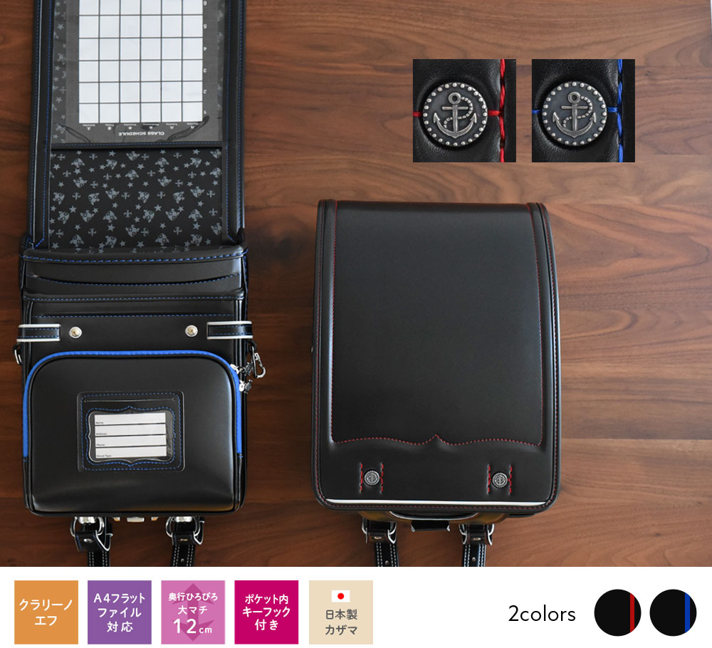 イカリ鋲のマリンランドセルがリニューアル。容量を大きくし、フラットファイル対応、オープンポケットなど、パワーアップして登場しました。 シンプルなデザインでステッチや鋲。控えめなかっこよさ。