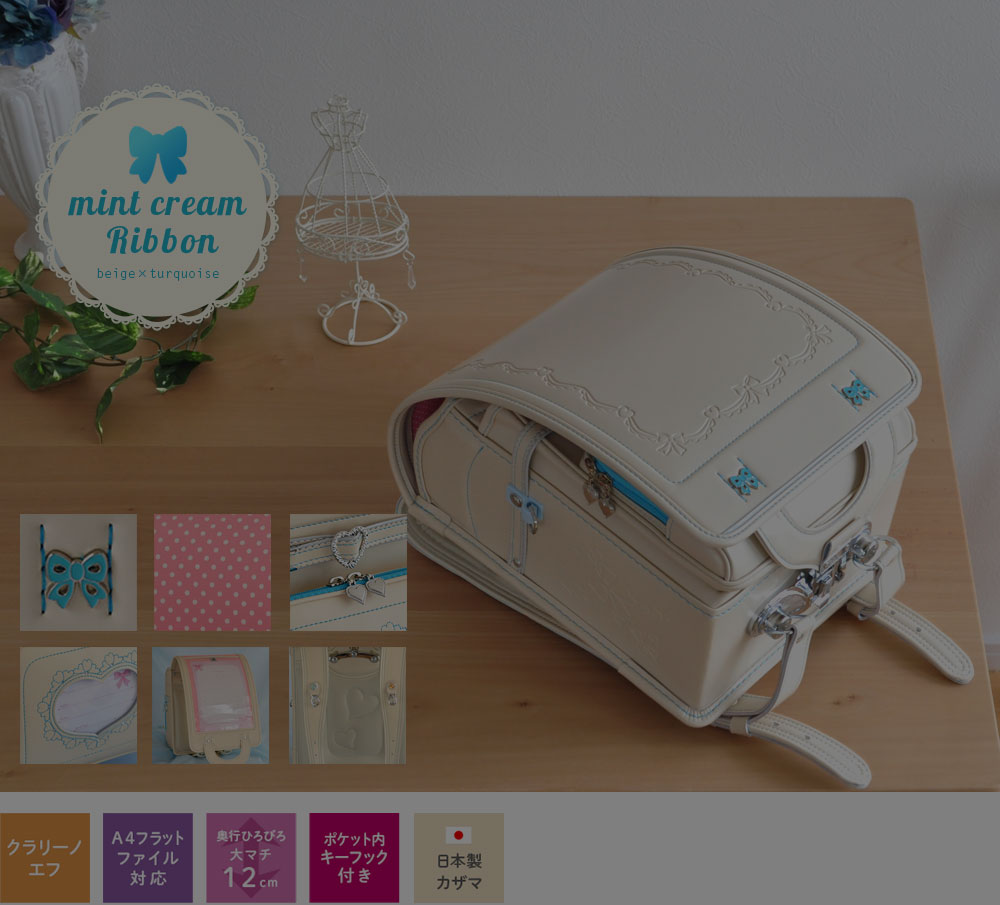 ミントのリボン鋲と型押し加工で控えめなかわいらしさ。