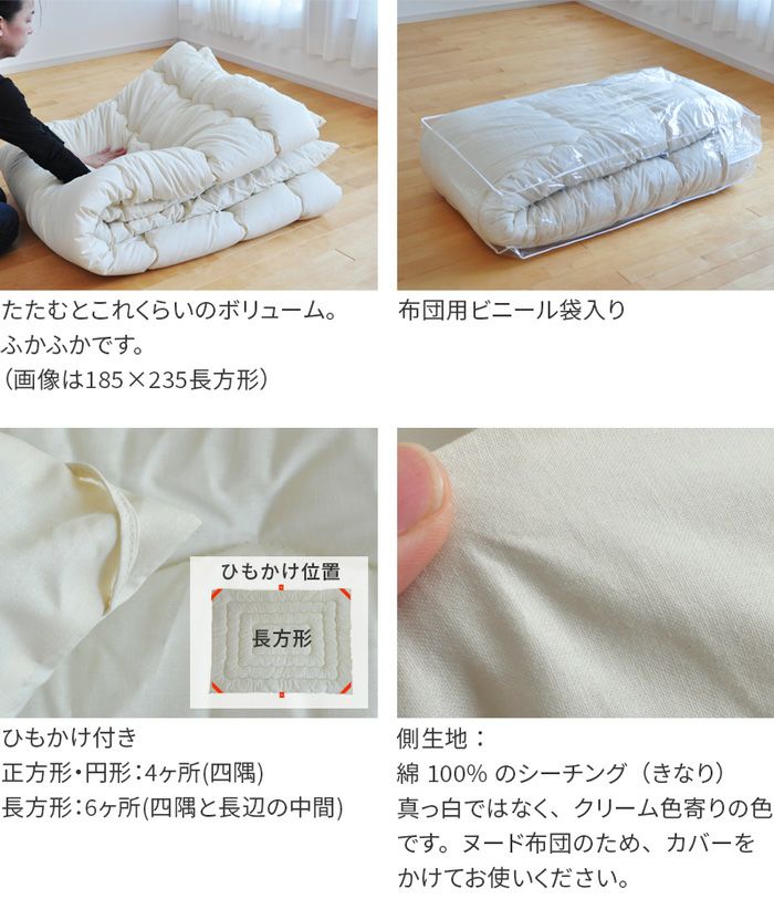 他の画像を見る 90×90角 正方形こたつに こたつ布団 ヌード 205×205cm正方形 掛け布団 生成り こたつ掛け布団 厚掛布団 国産 日本製 送料無料 BMオリジナル 送料無料 国産 レビューキャンペーン対象 販売価格 ¥ 10,780 税込 お気に入りに登録する