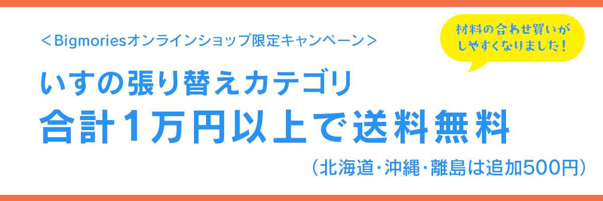 - 椅子の張り替えカテゴリ以外の商品を合わせて1万円以上購入の場合は対象外となります。