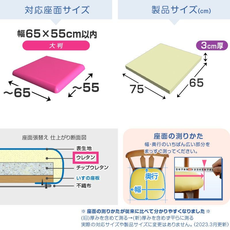 他の画像を見る いすの張り替え用材料 素材 いすはりーず 3枚まで1送料/ウレタン 単品【3cm厚】55×55cm 1脚分カット済 国産 椅子の張り替え スポンジ クッション 張り替え イス チェア 座面 修理 張替え 張地 いす DIY 椅子張替え はりかえ 椅子の張替え 椅子 レビューキャンペーン対象 販売価格 ¥ 920 税込 お気に入りに登録する