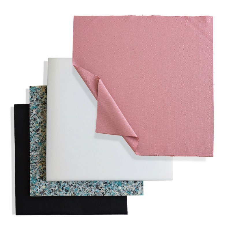表地・ウレタン・不織布を1脚分ずつカット済みでセットにしています。座面の厚みやサイズに応じたバリエーションも豊富。丁寧な説明書付きで、DIY初心者の方でも安心して取り組めます。