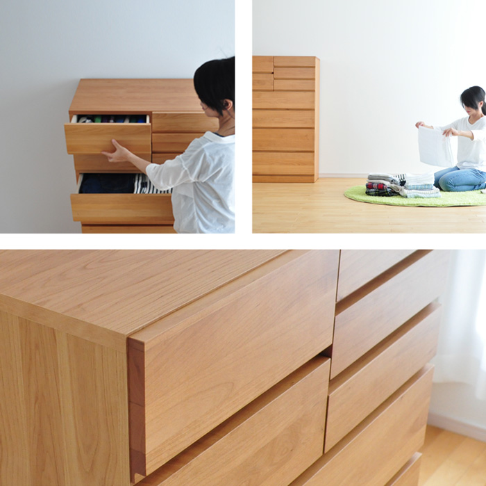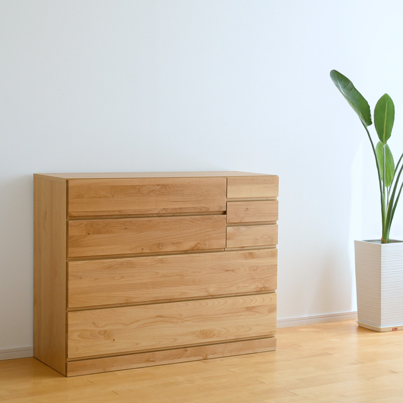 天然木アルダー材を使用し、昔ながらのたんすの製法で仕上げた日本製チェスト。