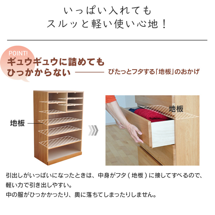 引出しが滑りやすく、衣類が引っかかりません。