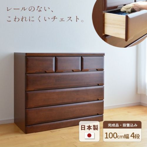 - タンス チェスト 幅100cm 4段 SMO 完成品 国産 日本製 天然木 引き出し 引出し 小物 収納 箪笥 たんす 子供 シンプル 木製 ブラウン BR ラバーウッド材 丈夫 送料無料 JUST FIT