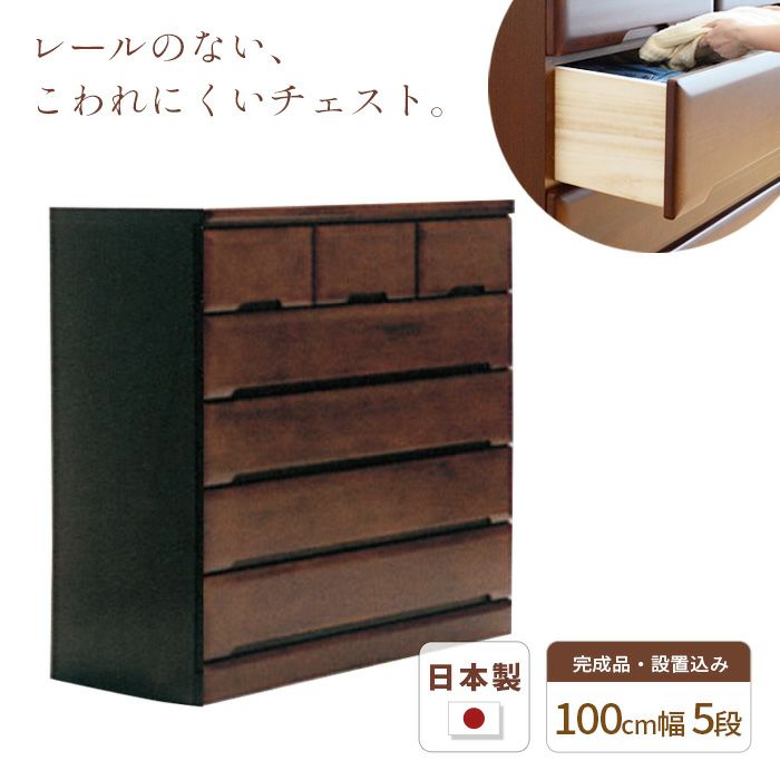 他の画像を見る 【開梱設置便】スライドレールがついていないから、こわれにくい。 タンス チェスト 幅100cm 5段 EVR 完成品 国産 日本製 天然木 引き出し 引出し 小物 収納 箪笥 たんす 子供 シンプル 木製 ナチュラル NA ラバーウッド材 丈夫 送料無料 JUST FIT 送料無料 3年保証 国産 レビューキャンペーン対象 販売価格 ¥ 77,200 税込 お気に入りに登録する