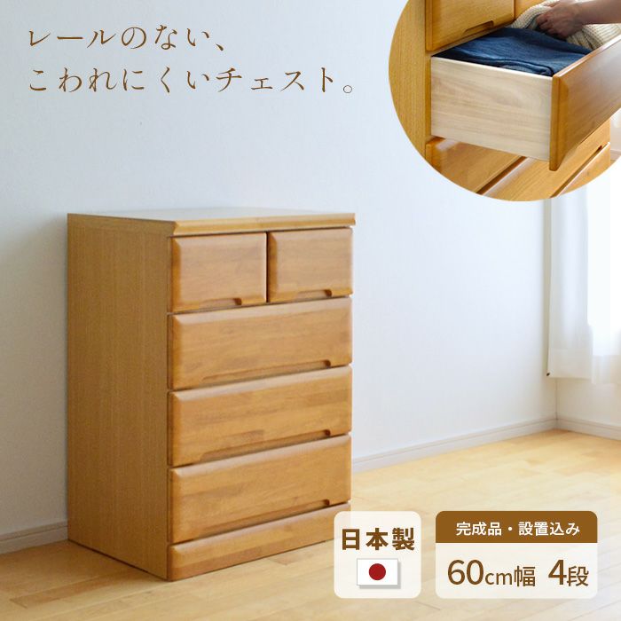 他の画像を見る 【開梱設置便】スライドレールがついていないから、こわれにくい。 タンス チェスト 幅60cm 4段 EVR 完成品 国産 日本製 天然木 引き出し 引出し 小物 収納 箪笥 たんす 子供 シンプル 木製 ナチュラル NA ラバーウッド材 丈夫 送料無料 JUST FIT 送料無料 3年保証 国産 レビューキャンペーン対象 販売価格 ¥ 46,900 税込 お気に入りに登録する