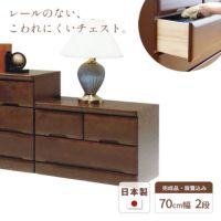 タンス チェスト 幅70cm 2段 SMO 完成品 国産 日本製 天然木 引き出し 引出し 小物 収納 箪笥 たんす 子供 シンプル 木製 ブラウン BR ラバーウッド材 丈夫 送料無料 JUST FIT