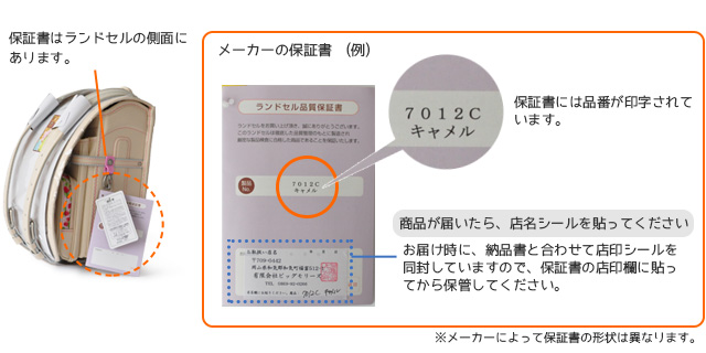 ■ランドセルの品番(保証書に記載があります) :
