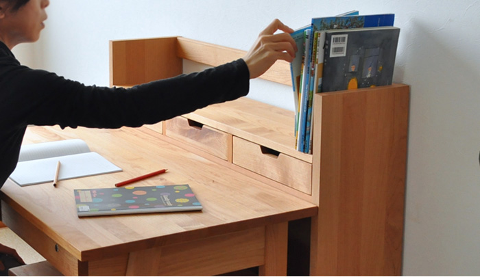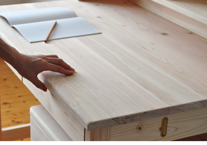机の上でノートを開いた小さな手が、やがてパソコンを打つ手に変わっても、木の質感や引き出しの感触は変わらず、どこか懐かしさを感じさせてくれる。そんな時間の積み重ねが、使う人と家具との絆を育てていきます。
