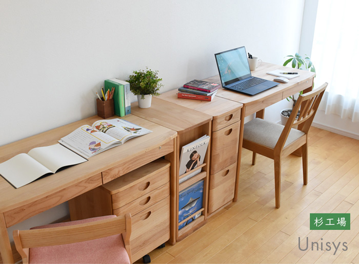 杉工場のデスクは、その柔軟さと誠実なつくりで、家族の時間とともに静かに成長していきます。