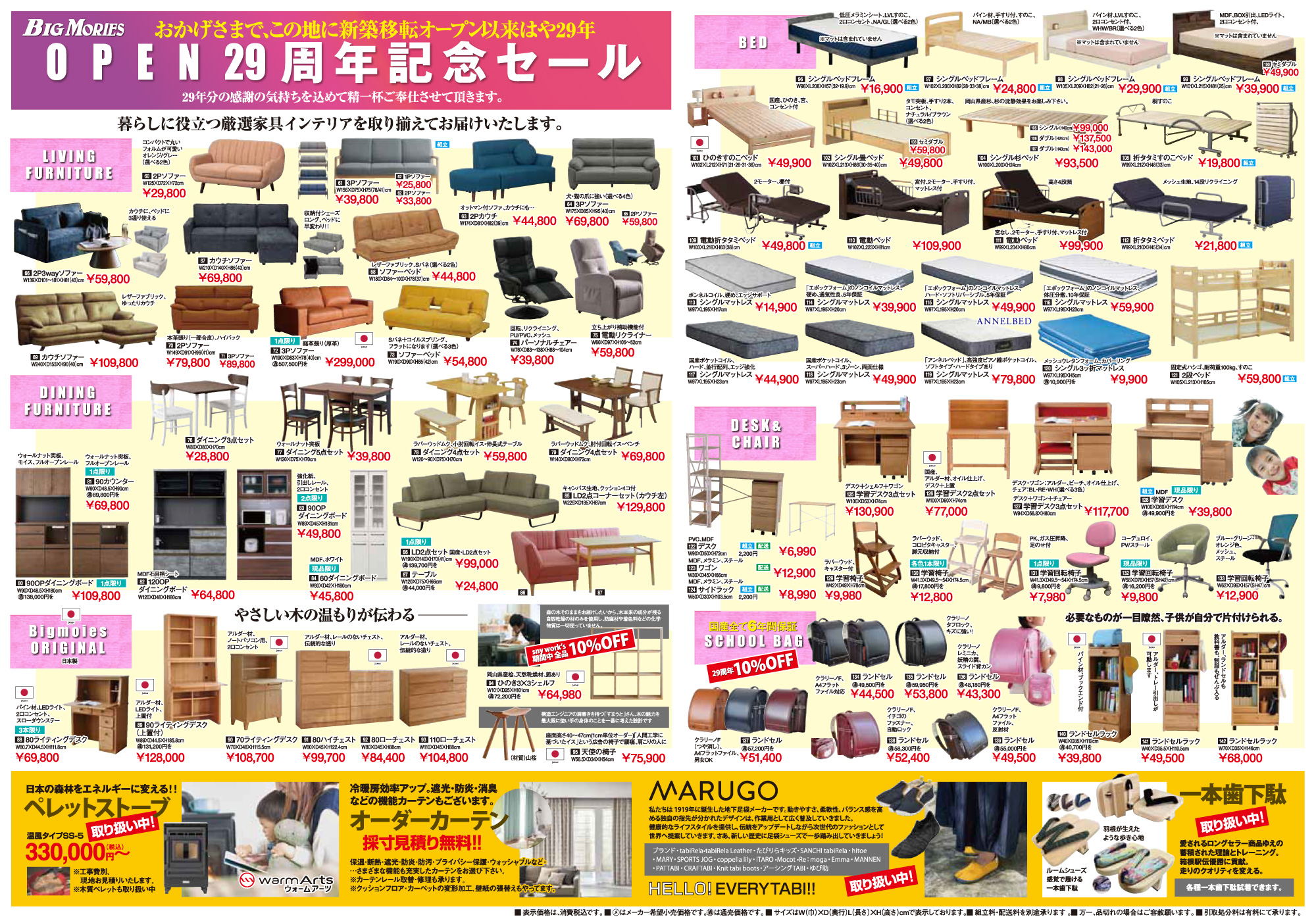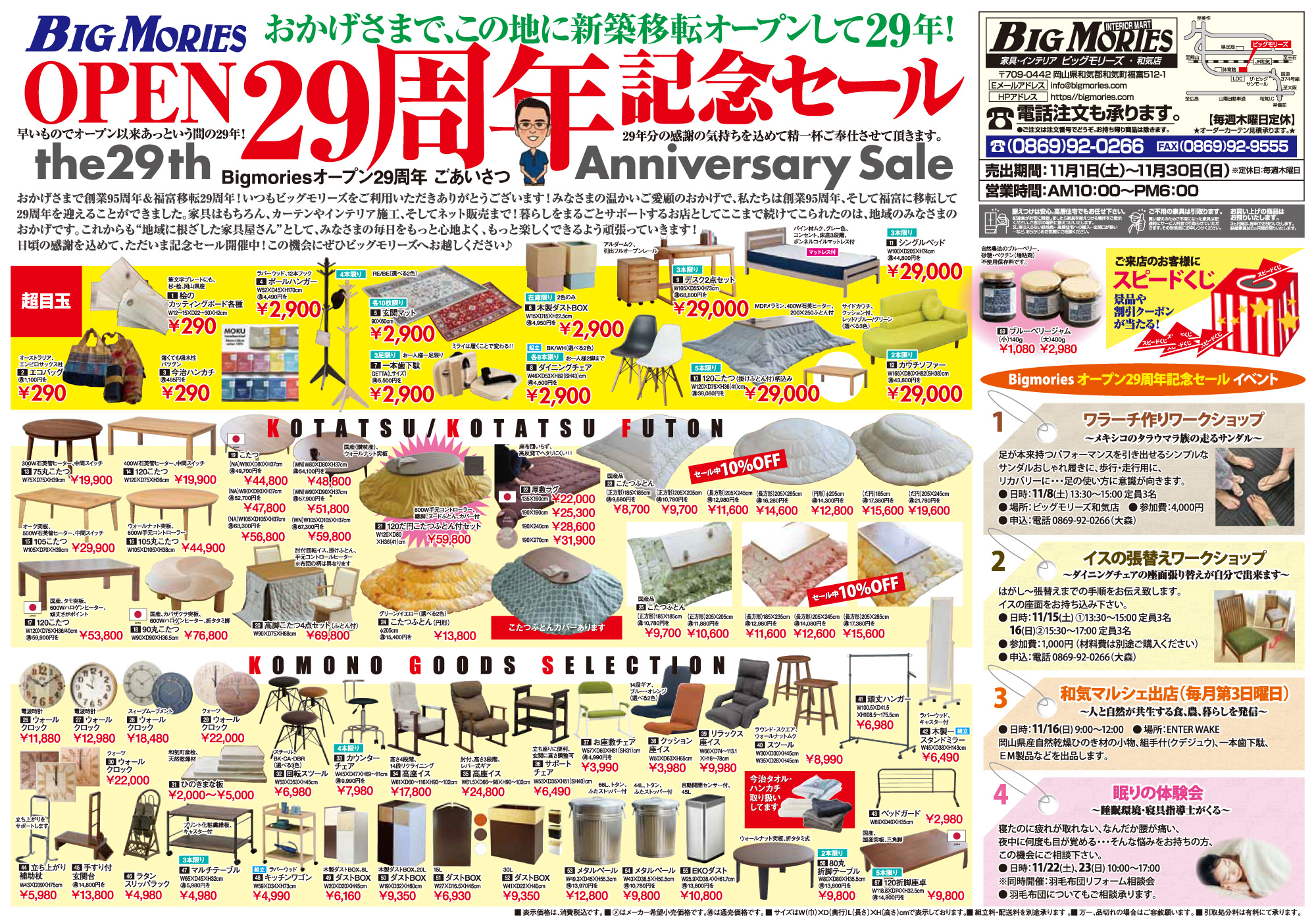 日頃のご愛顧への感謝を込めて、和気店にて「29周年記念セール」を開催しております。
