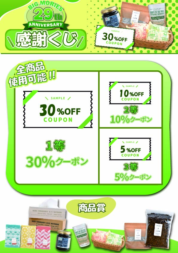 - 店内全品に使える割引クーポン(最大30%OFF)
