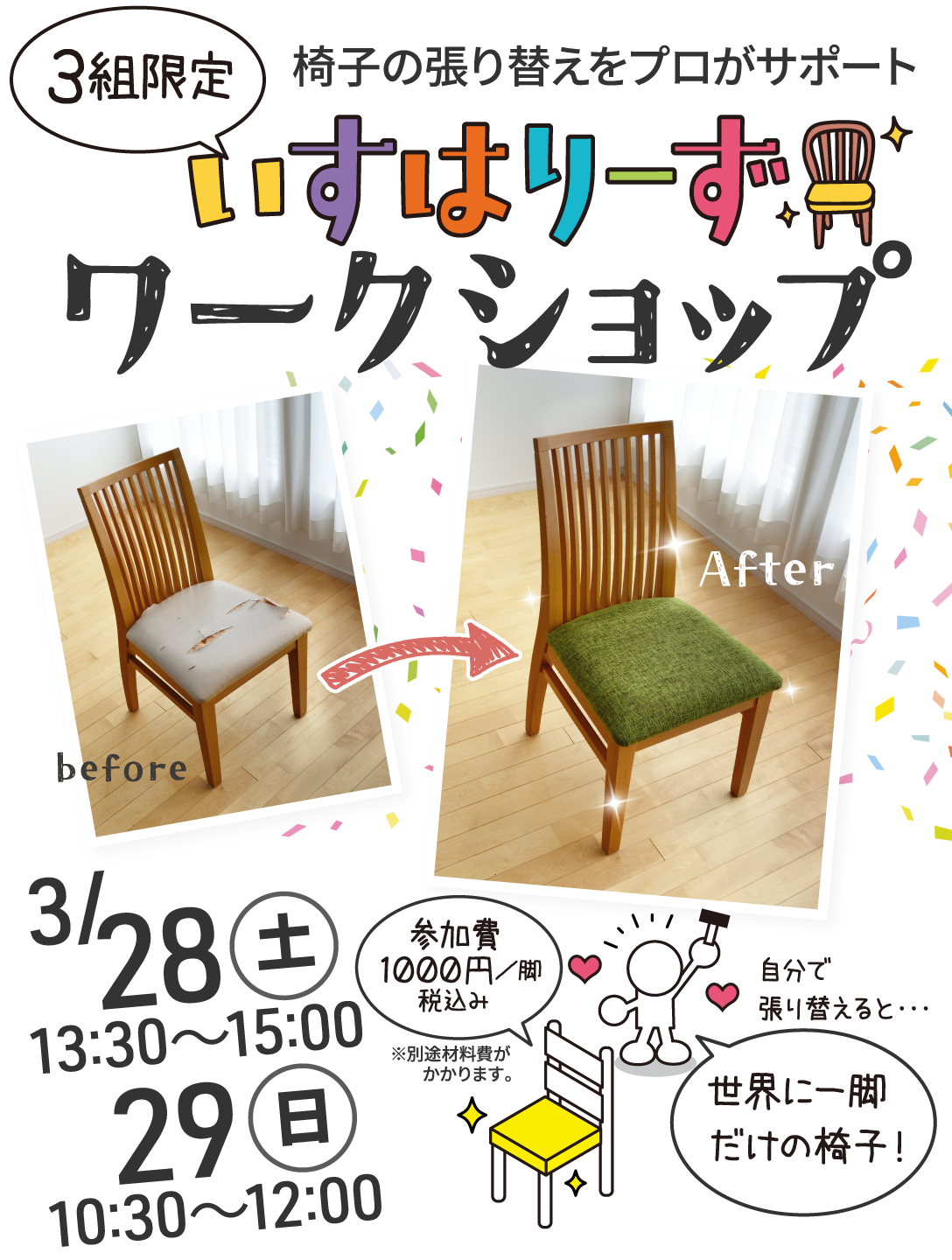 世界に一脚だけの椅子を作ろう✨椅子の張替えワークショップ開催
